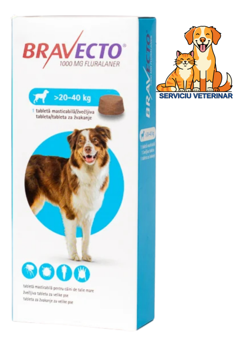 MSD Bravecto 20 - 40 kg, serviciu veterinar deparazitare externă pentru câini cu greutatea între 20-40 kg